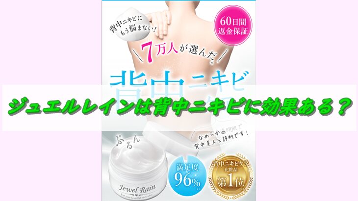 ジュエルレインは、背中ニキビのケアに効果が期待できる医薬部外品のジェルクリームです。その理由は、ジュエルレインが顏の7倍も厚いといわれる背中の皮膚に対して、独自のトリプルアクション(柔軟化・ニキビ予防・高保湿)でアプローチするからです。以上...